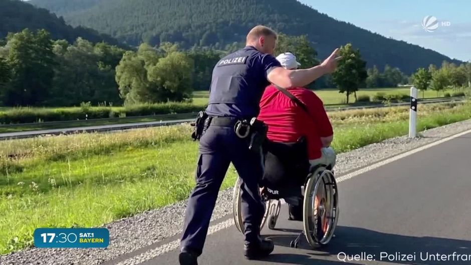 Im unterfränkischen Amorbach haben Beamte einen Rollstuhlfahrer bis zum Nachbarort geschoben. Der Mann wollte einen Bekannten besuchen und hatte die Strecke bei der Hitze unterschätzt.