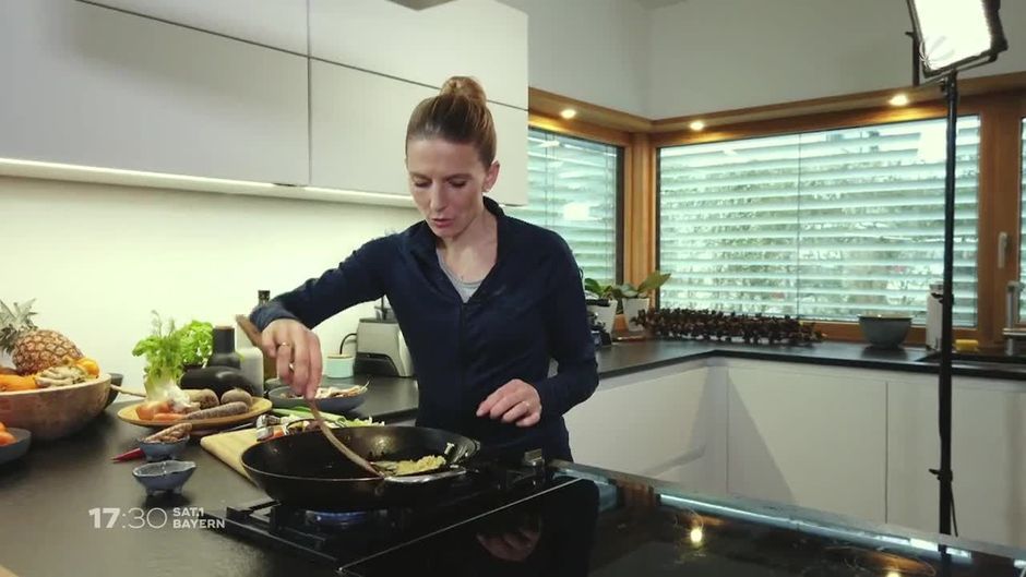Wie stärke ich mein Immunsystem? Ex-Profi-Läuferin Leni aus Bamberg ist Expertin in Sport und Ernährung und nimmt uns mit in ihren Alltag. Diesmal zeigt uns die Sportlerin ihren Immun-Booster aus der Pfanne.