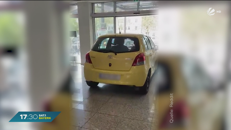 Kuriose Aktion: Ein Mann aus Schwabach hat sein Auto wie im Drive-through durch die Schiebetüren einer Sparkasse gesteuert – drinnen hat er dann gewendet und ist wieder rausgefahren.