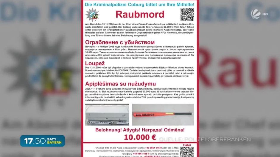 Mitwitz: 13 Jahre nach dem Supermarktmord von Mittwitz hat die Polizei Fahndungsaufrufe in verschiedenen Sprachen veröffentlicht.