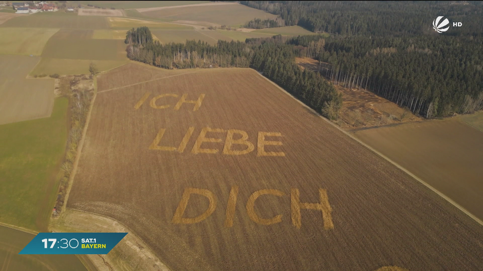 Romantik in Niederbayern: Landwirt mit Liebesbotschaft im Feld
