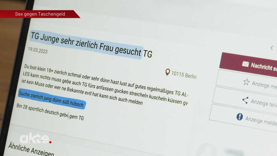 Sex gegen Taschengeld - damit versuchen bereits Minderjährige über Anzeigen-Plattformen an ein paar Hundert Euro zu kommen. Doch was macht das mit den jungen Menschen? Und wer sind die Männer, die nach diesen Taschengeld-Treffen suchen?