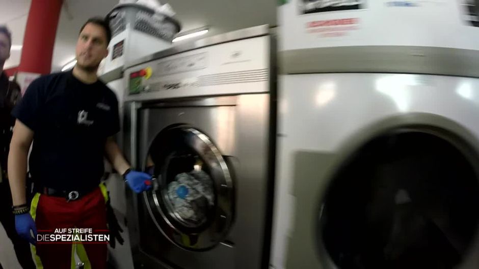 Ein kleiner Junge ist in einem Waschsalon in einer Waschmaschine gefangen!