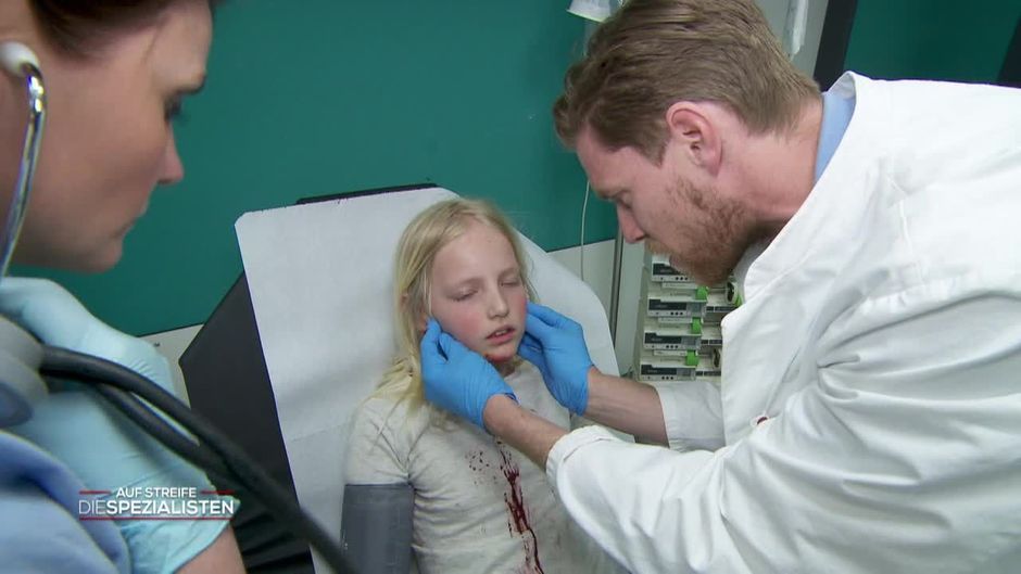 Ein junges Mädchen wird in die Notaufnahme gebracht: Sie hat ein blutiges Kinn und schwitzt stark...