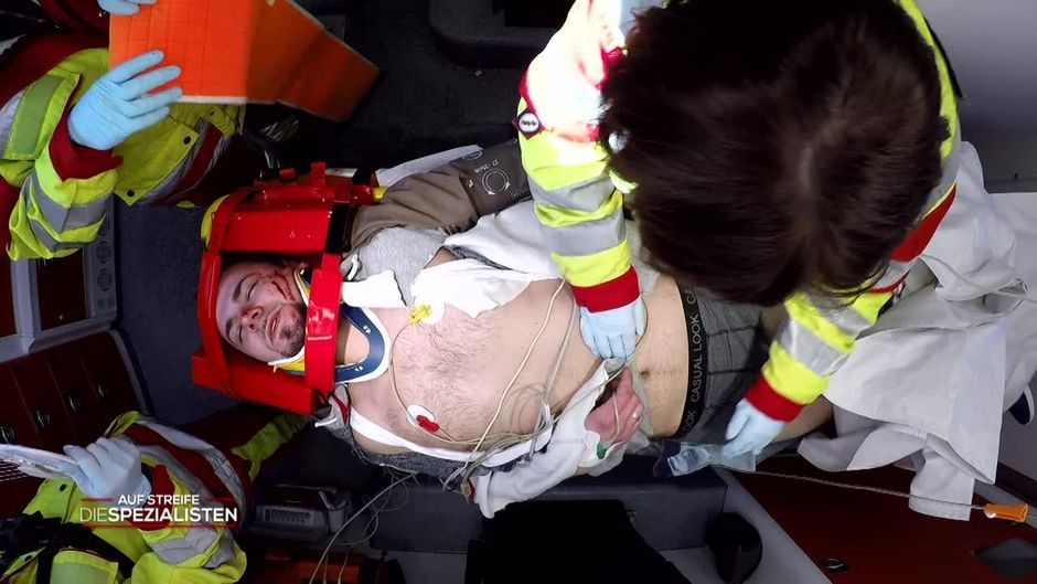 Das Rettungsteam versorgt an einer Unfallstelle zwei Verletzte. Da der Autounfall auch ein gezielter Anschlag gewesen sein könnte, haben die Spezis auch die Polizei alarmiert. Doch was wirklich die Ursache für den Unfall war, soll alle überraschen.