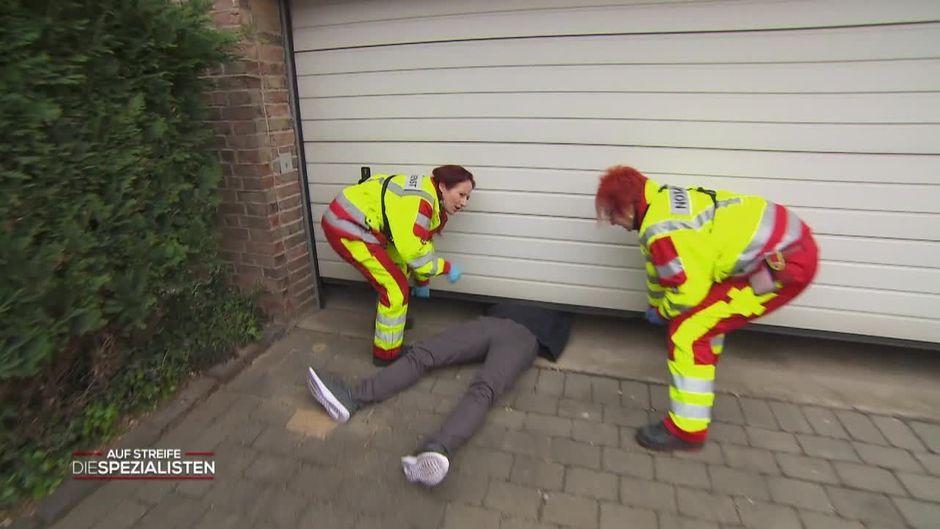 Eine Frau verständigt die Rettungskräfte: Ihr Nachbar ist unter dem elektrischen Rolltor seiner Garage eingeklemmt. Kommen die Einsatzkräfte noch rechtzeitig?