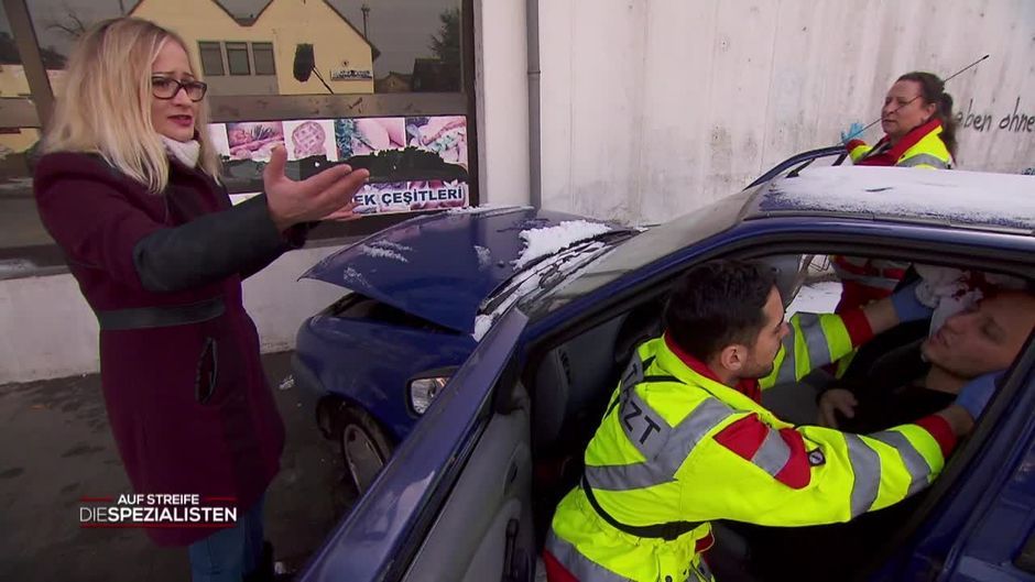 Die Retter werden zu einem Verkehrsunfall gerufen. Der Freund der Anruferin hat die Kontrolle über das Fahrzeug verloren und ist schwer verletzt.