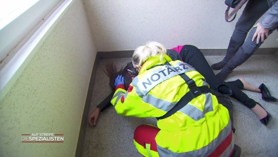 Eine Anruferin meldet, dass sie im Treppenhaus eine verletzte und bewusstlose Frau gefunden hat. Die Rettungskräfte machen sich sofort auf den Weg...
