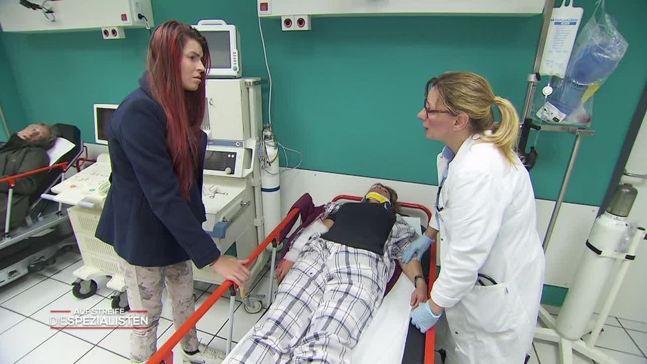In die Notaufnahme wird eine Frau gebracht, die schwer gestürzt ist. Ihr Ehemann und die Tochter sind außer sich vor Sorge.