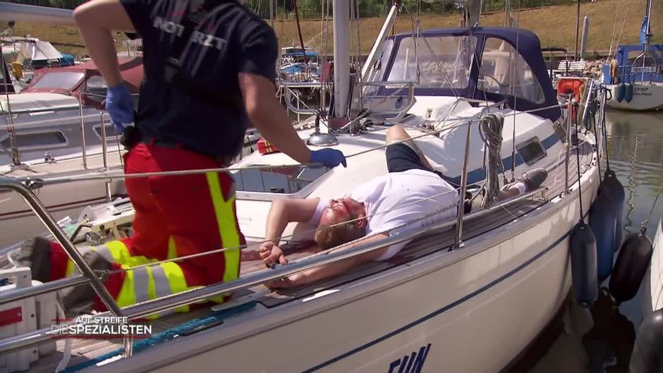 Die Einsatzkräfte eilen nun zu einem Segelboot. Dort ist jemand nach einem Sturz bewusstlos.