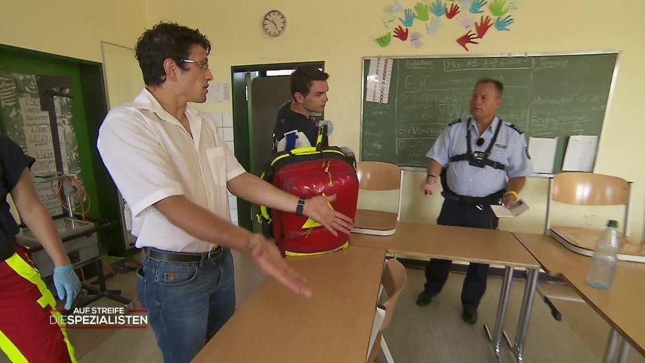 Die Notfallmediziner treffen an der Schule ein, von der sie ein Notruf von einem kleinen Jungen erreicht hat: Justin findet seinen Asthmaspray nicht. Auch seine Mutter ist ganz verzweifelt.
