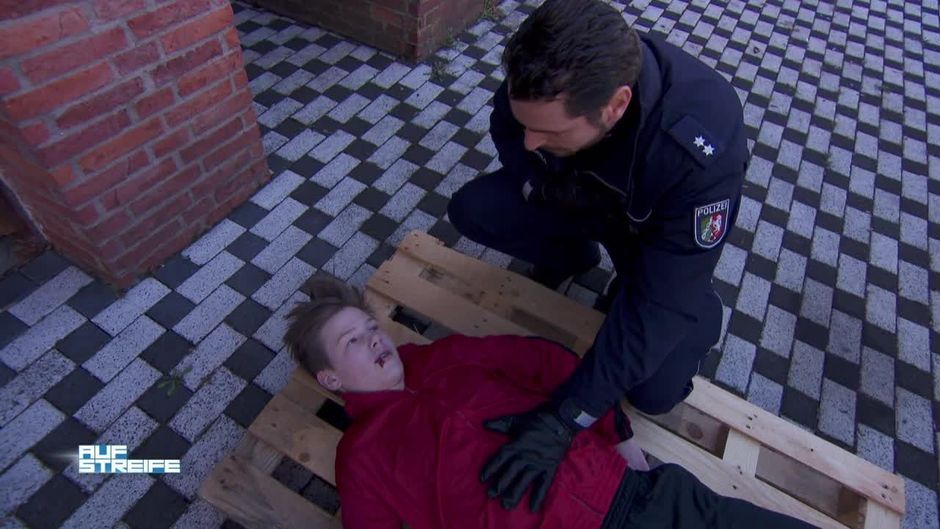 Die Beamten werden zu einem schrecklichen Szenario gerufen. Ein Junge ist mit seiner Kleidung an Paletten festgenagelt und wird von anderen Jungs gefilmt.