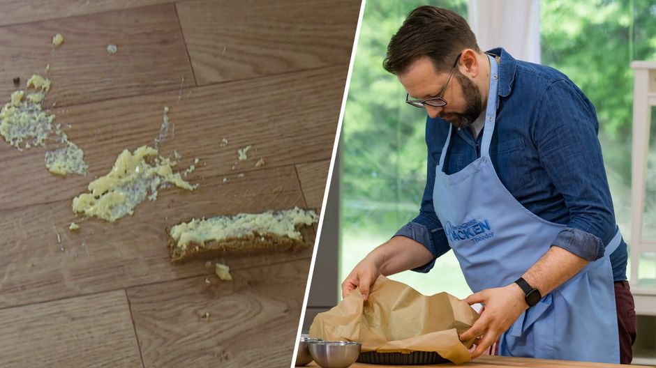 Schon bei der ersten Aufgabe geht einiges schief: Dunkle Böden, gebrochene Kuchen und abgestürzte Kuchen-Teile sorgen bei "Das große Backen" 2023 für einen Dämpfer. Theodor weiß, was das bedeutet: "Jetzt heißt es retten, was zu retten geht". Gelingt das?