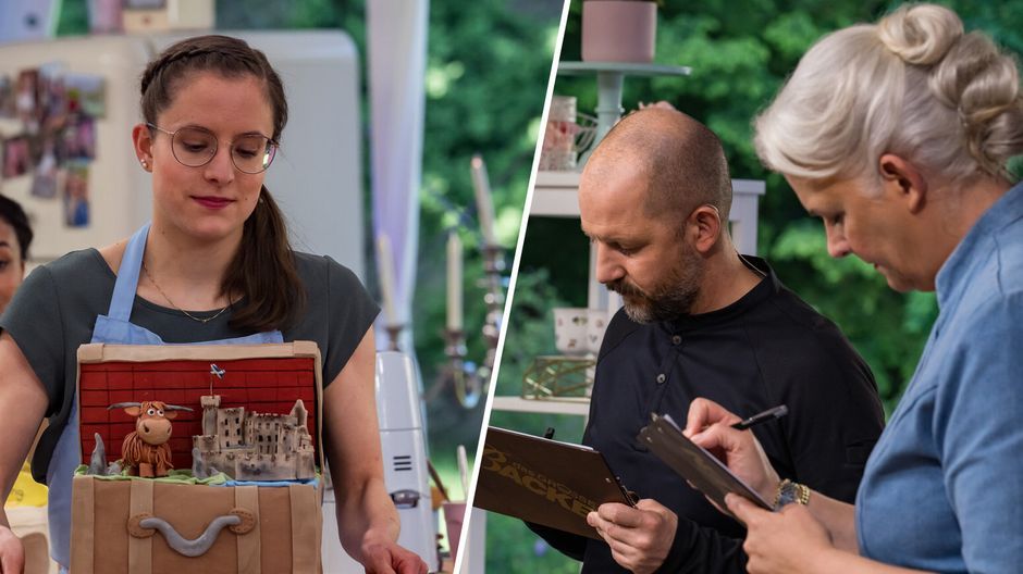Die Verkostung der Koffer-Torten schwankt zwischen Bedenken und Begeisterung. Erika hat bei ihrer Torte auf einen Shortbread-Boden gesetzt und der ist - im wahrsten Sinne des Wortes - die Härte. Fällt Erikas Torte bei "Das große Backen" 2023 durch?