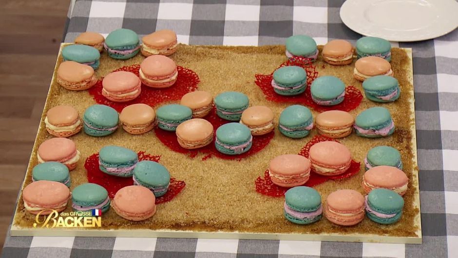 Auch Christoph vergnügt sich an der französischen Riviera. Seine Macarons sind eine Kombination aus Waldbeer-Buttercreme und Mango-Maracuja-Buttercreme. Doch leider ist ihm die Form nicht so ganz gelungen, was wird die Jury dazu sagen?