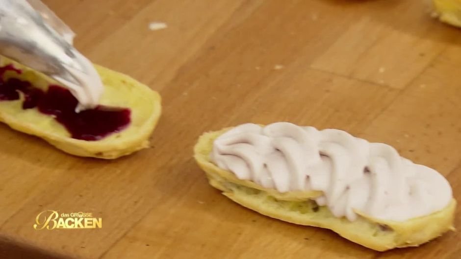 Saras Eclairs sind zu warm und ihre Creme verläuft auf dem Gebäck. Also muss sie innerhalb weniger Minuten eine neue Creme aufschlagen. Hat sie am Ende noch genug Zeit zum Dekorieren und Anrichten?