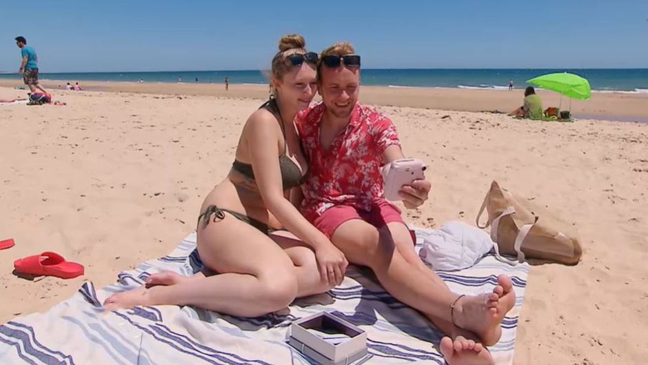 Die Frischvermählten Peter und Jaqueline genießen das sonnige Portugal mit allen Sinnen. Als er seine Frau zum ersten Mal im Bikini sieht, ist Peter absolut begeistert und kann seine Freude über den Anblick kaum zurückhalten.