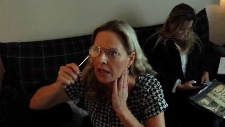 Schauspielerin Dagmar lacht sich schlapp, weil sie eine schräge Idee hat, wie sie eine Szene umsetzen könnte. Eine Brille ohne Bügel spielt bei dieser Idee eine zentrale Rolle. Ob sich Dagmar durchsetzen konnte?