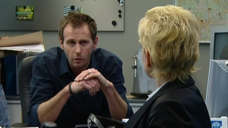 Die Kommissare entdecken den Namen der Kommunalpolitikerin Karin Voss im Terminbuch des toten Callboys. Die Fragestunde mit Alex und Gerrit ist Frau Voss peinlich.