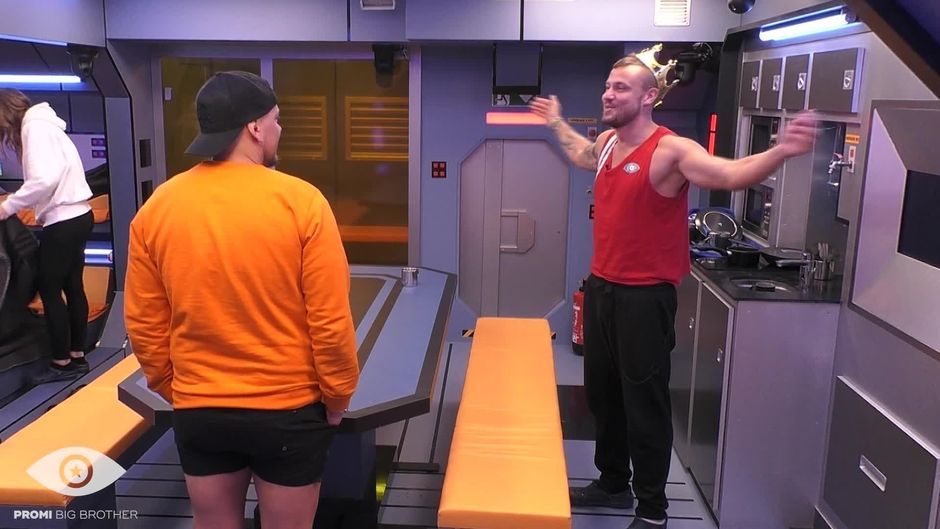"Promi Big Brother" 2024: Der große Bruder bittet seine Bewohner:innen zur Knutsch-Challenge.