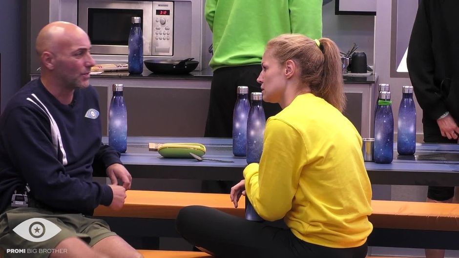 "Promi Big Brother" 2024: Der große Bruder bittet seine Bewohner:innen zur Knutsch-Challenge.