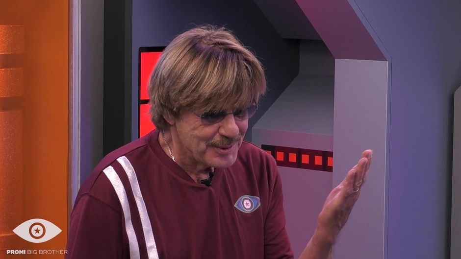 Geschichtenstunde in der "Promi Big Brother"-Raumstation: Jörg Draeger erzählt den völlig gebannten Promis, wie seine Sendung "Geh aufs Ganze!" und der Zonk entstanden.