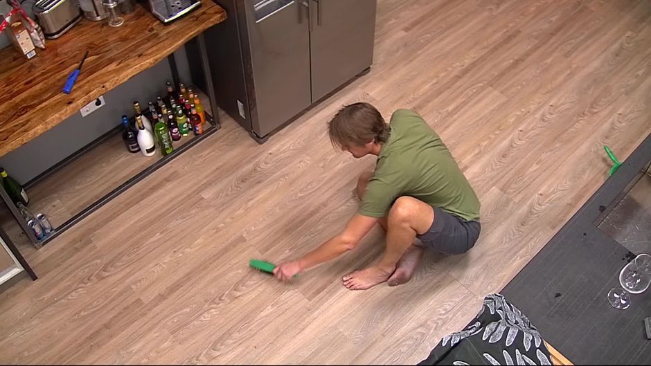 Um sich zu entspannen macht Milo ein paar Yoga Übungen. Währenddessen hat Steffen seine Freude auf dem Boden zu sitzen und diese mit einem Handfeger krümelfrei zu machen.