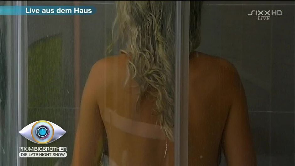 Ein echter Hingucker: Cathy nimmt eine heiße Dusche