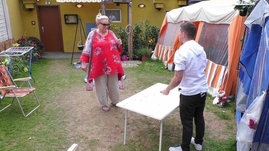 Lilo von Kiesenwetter, Deutschlands mächtigste Seherin, und der kindliche Dschungelkönig Joey Heindle, kommen sich beim ersten Zeltlager-Putzeinsatz näher.