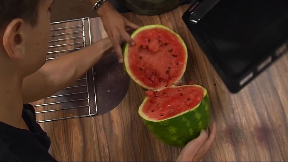 Man nehme eine Melone, ein Backblech, rohe Gewalt und siehe da: Das Ergebnis kann sich doch eigentlich sehen lassen.