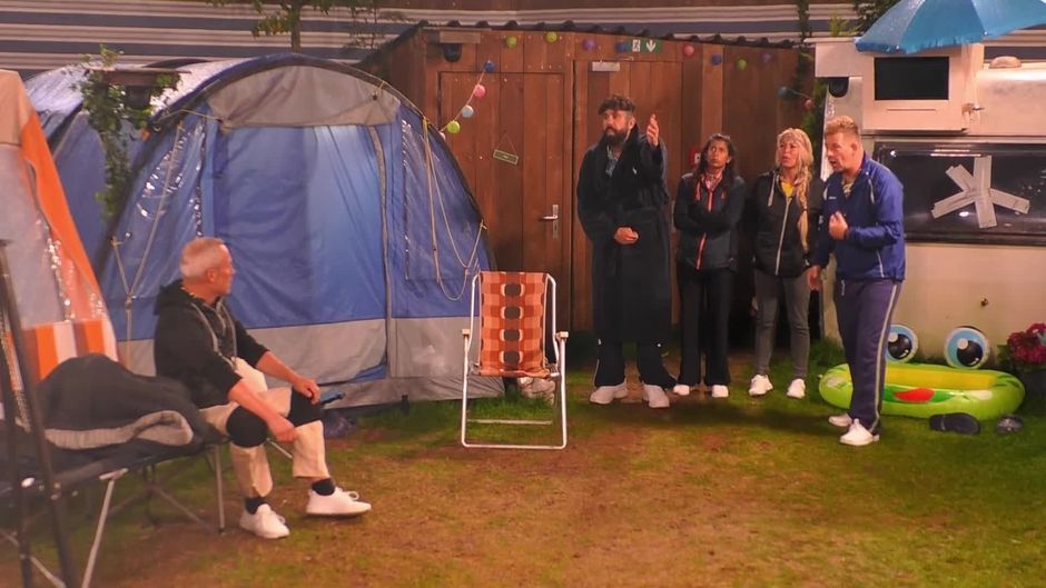 Nachdem Jürgen das Match abgebrochen hat, geht er zurück ins Zeltlager. Den anderen Bewohnern passt das gar nicht. Sie stellen Jürgen zur Rede.