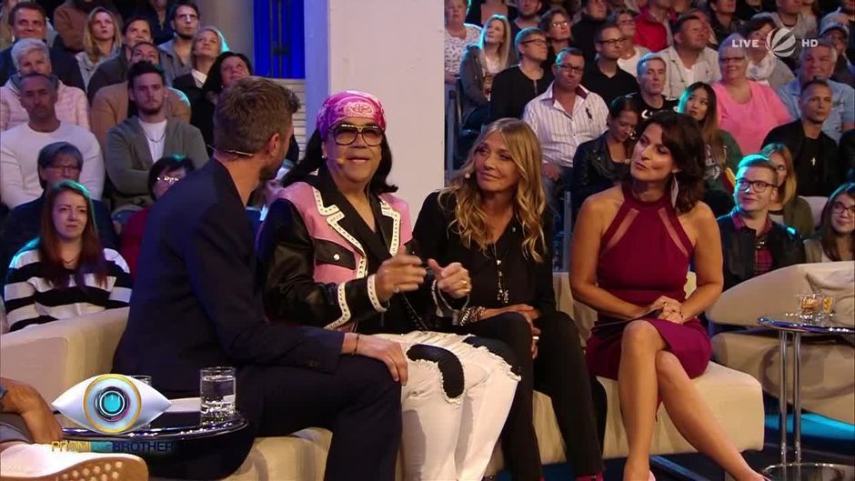 Mike Shiva und Nicole Belstler-Boettcher blicken während des Finales von "Promi Big Brother" 2018 auf ihre eigene Zeit im Haus zurück.