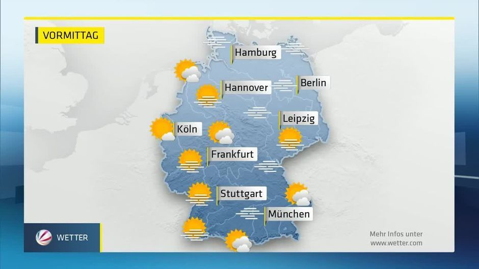 Vormittags ist es erst meist neblig-trüb. Am Nachmittag bleibt es von der Donau bis zum Bodensee so - in den übrigen Regionen wird es sonnig.