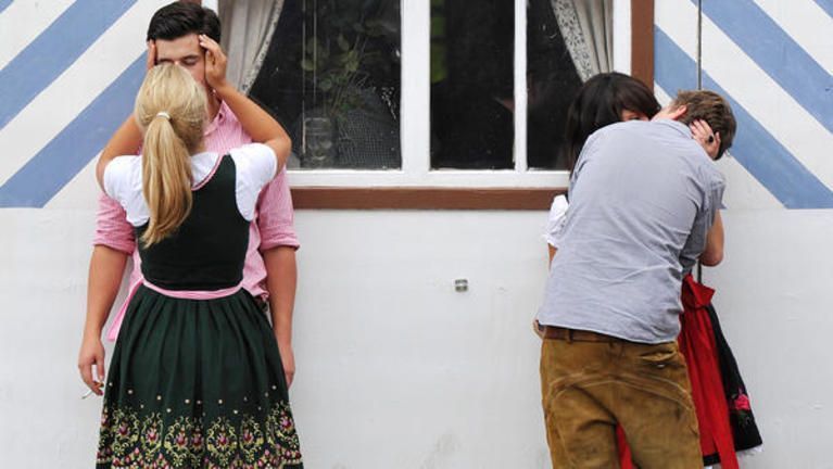 Nach einigen Maß Bier sinkt die Hemmschwelle und die Lust miteinander Zärtlichkeiten austauschen steigt. Mit wem oder was ist da oft egal...