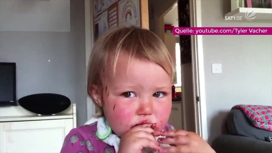 So reagiert ein Baby, das zum 1. Mal Schokolade isst