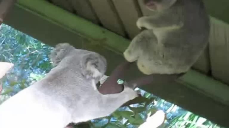 Koalas gelten eigentlich als Kuscheltiere. Doch die tiefe Stimme dieser Exemplare während des Kampfes macht einem beim Zuhören schon Angst.