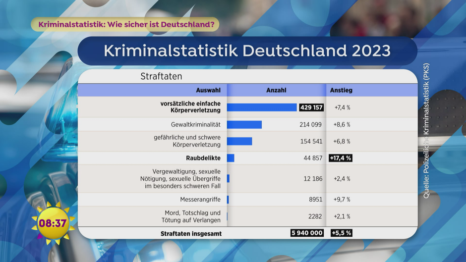 Die Bilanz der Kriminalstatistik für 2023 ist erschreckend. Die Zahl der gewalttätigen Straftaten ist gestiegen. Über die Hintergründe besprechen wir mit Rainer Wendt, dem Bundesvorsitzenden der Deutschen Polizeigewerkschaft.