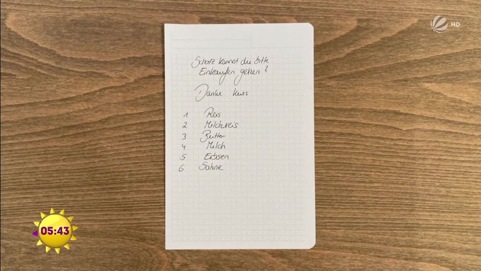 Show-Experte Lukas Haunerland hat heute Einkaufszettel mitgebracht, den unsere Moderatoren entziffern sollen. Doch der Einkaufs-Auftrag ist mehrdeutig.