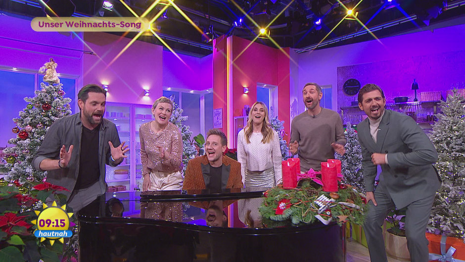 Die Frühstücksfernsehen-Allstars präsentieren live ihren Weihnachtssong “Frohe Weihnacht“ heute in der Sendung. Dabei erklärt Show-Experte Lukas Haunerland wie das Projekt entstanden ist. Genießen Sie jetzt die Bilder vom Dreh und den Song …