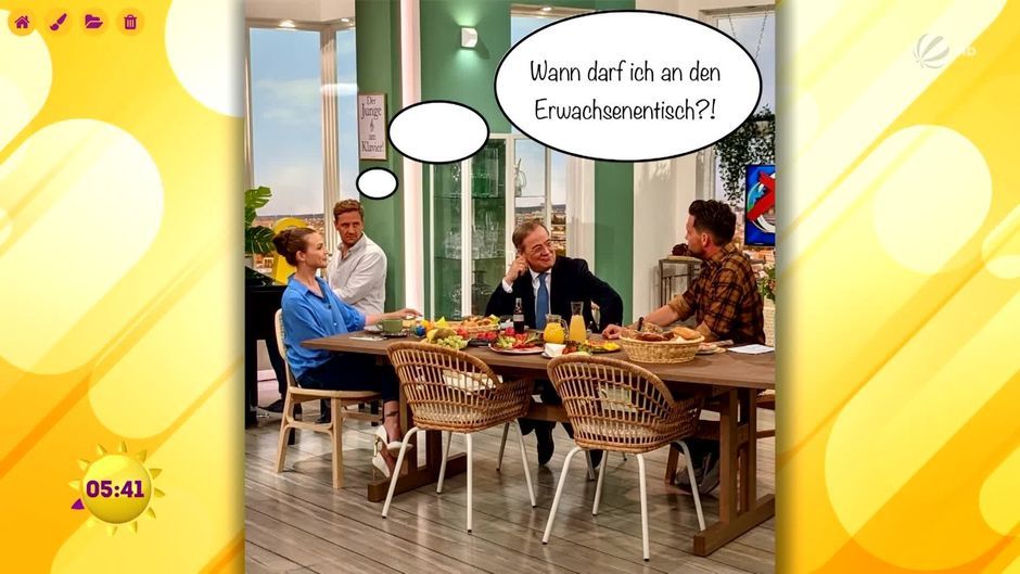 Show-Experte Lukas Haunerland hat uns ein Bild vom Frühstück mit Armin Laschet mitgebracht. Auf unseren Social Media-Kanälen wurden die Zuschauer dazu aufgerufen die Gedanken der Frühstücksteilnehmer aufzuschreiben und das haben sie getan!