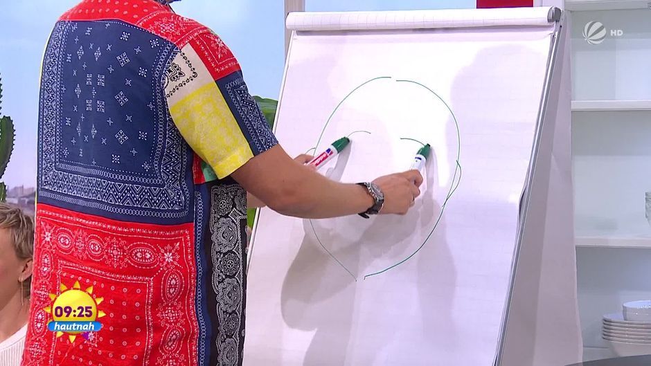 Unsere Moderatoren versuchen sich daran, mit beiden Händen gleichzeitig zu malen. Das Vorbild: ein Trend-Video eines kreativen Lehrers, dem das ganz einfach von der Hand zu gehen scheint.