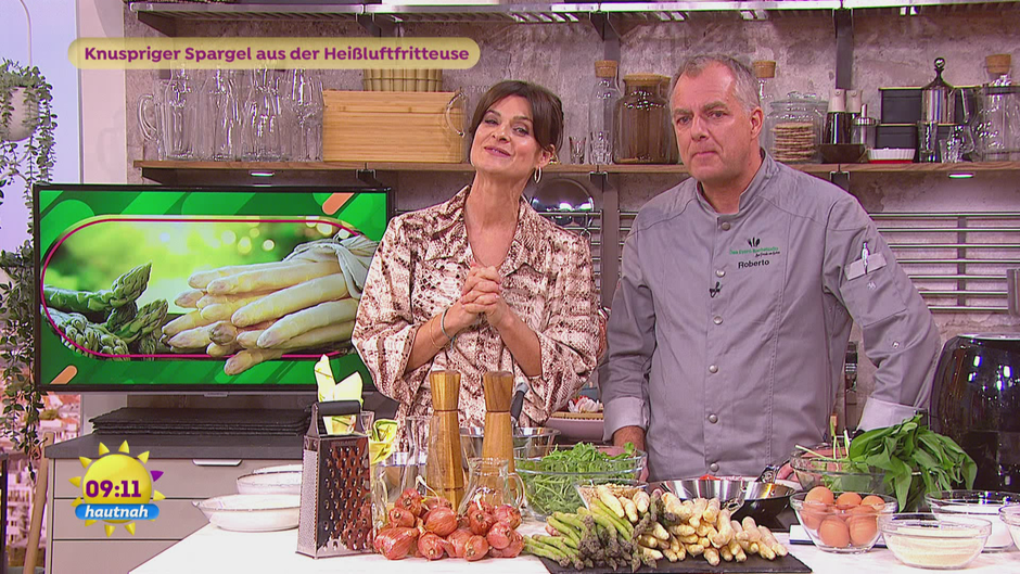 Die Spargel-Saison ist eröffnet! Ob weiß, grün oder violett – das Pflanzengemüse ist bei den Deutschen sehr beliebt und lässt sich in etlichen Varianten zubereiten. Koch Roberto Enßlen kredenzt seine Variation in einer Heißluftfritteuse. Mehr dazu hier!