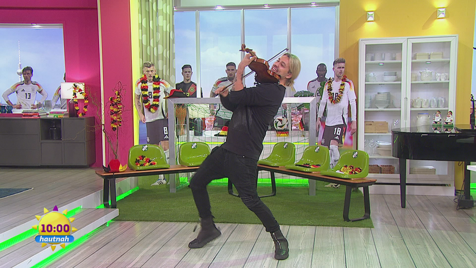 Statt einem Abschieds-Song von Show-Experte Lukas Haunerland gibt es zum Ende der heutigen Sendung einen besonderen Show-Act: David Garrett spielt passend zur EM eine mitreißende Version von "Seven Nation Army".