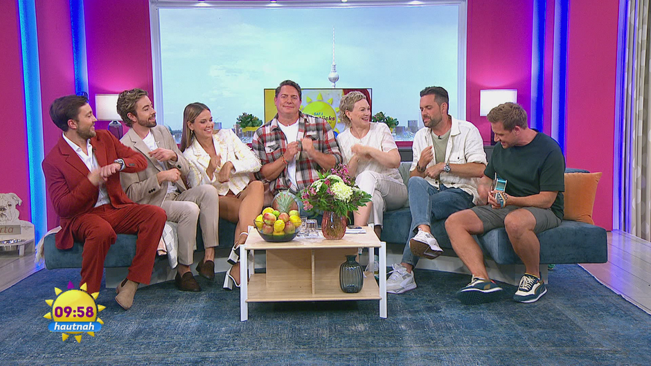 Ob kurze Hosen und nackte Beine oder wunderbare Gespräche und Geburtstagsgrüße - beim SAT.1-Frühstücksfernsehen wird die Sendung mit einem sommerlichen Song von Lukas Haunerland beendet.