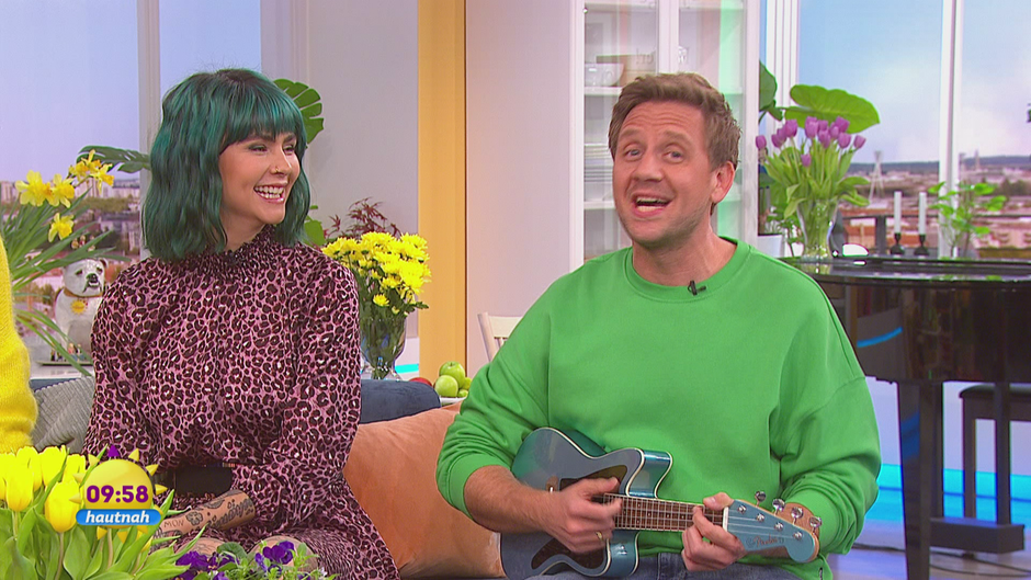 Unsere heutigen Gäste Isabella Franke und Sascha Zöller und die gewohnte Crew aus dem SAT.1-Frühstücksfernsehen hören den Abschieds-Song von Show-Experte Lukas Haunerland.
