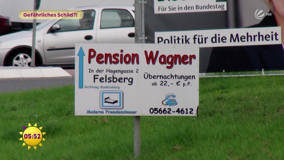 Ein Werbeschild soll den Straßenverkehr behindern. Das Absurde daran – es ist wirklich winzig und im selben Bereich gibt es noch viele andere Schilder.