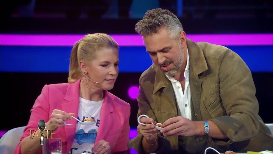 Aus den Geheimzutaten Koriander, fermentierter Knoblauch und Palmherz zaubern die Köche kreative und erstklassige Löffel. Was sagen die Coaches dazu?