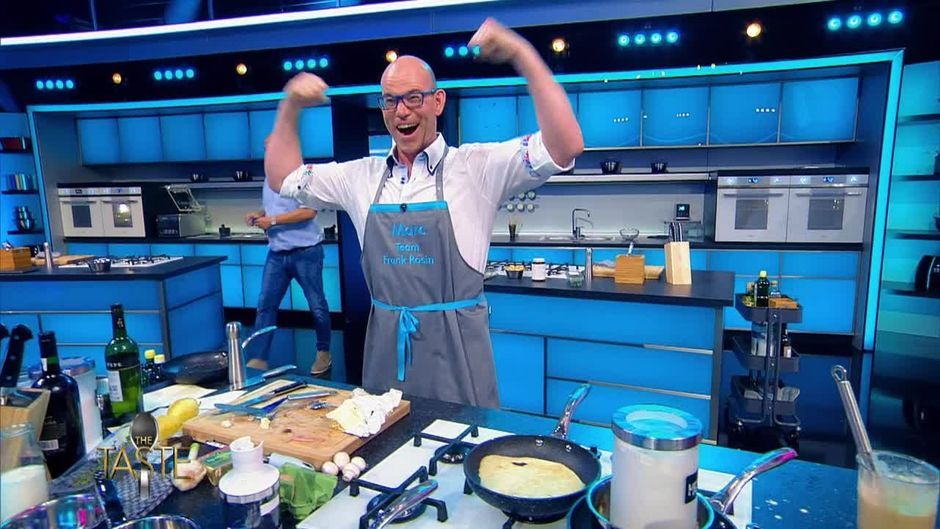 Frank Rosin feiert sein Team: bei Michi gibt es tonnenweise Pilze und bei Marc kiloweise Crepe. Doch diesen Crepe-Teig möchte Michi nur ungern auch in Anspruch nehmen.