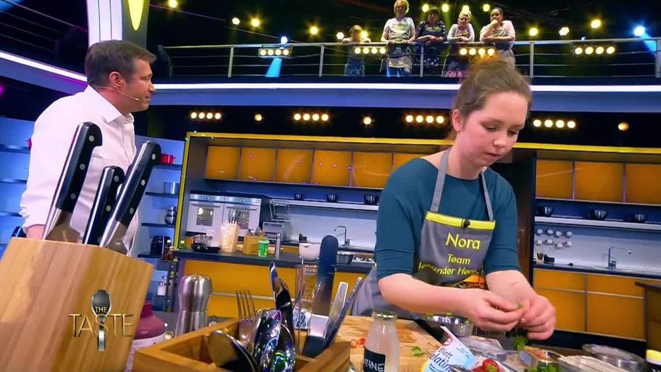 Nora hat sich aus Versehen vergriffen: statt mit Zucker würzt sie ihr Crumble mit Salz. Nun muss sie das noch einmal korrigieren.